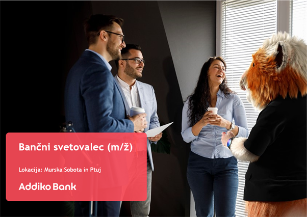 Splošna prijava pomeni, da bo Addiko Bank d.d shranil osebne podatke izključno za postopek zaposlovanja in izbire, za največ 24 mesecev po datumu prijave ali do preklica soglasja, kadar koli znotraj obdobja 24. mesecev.